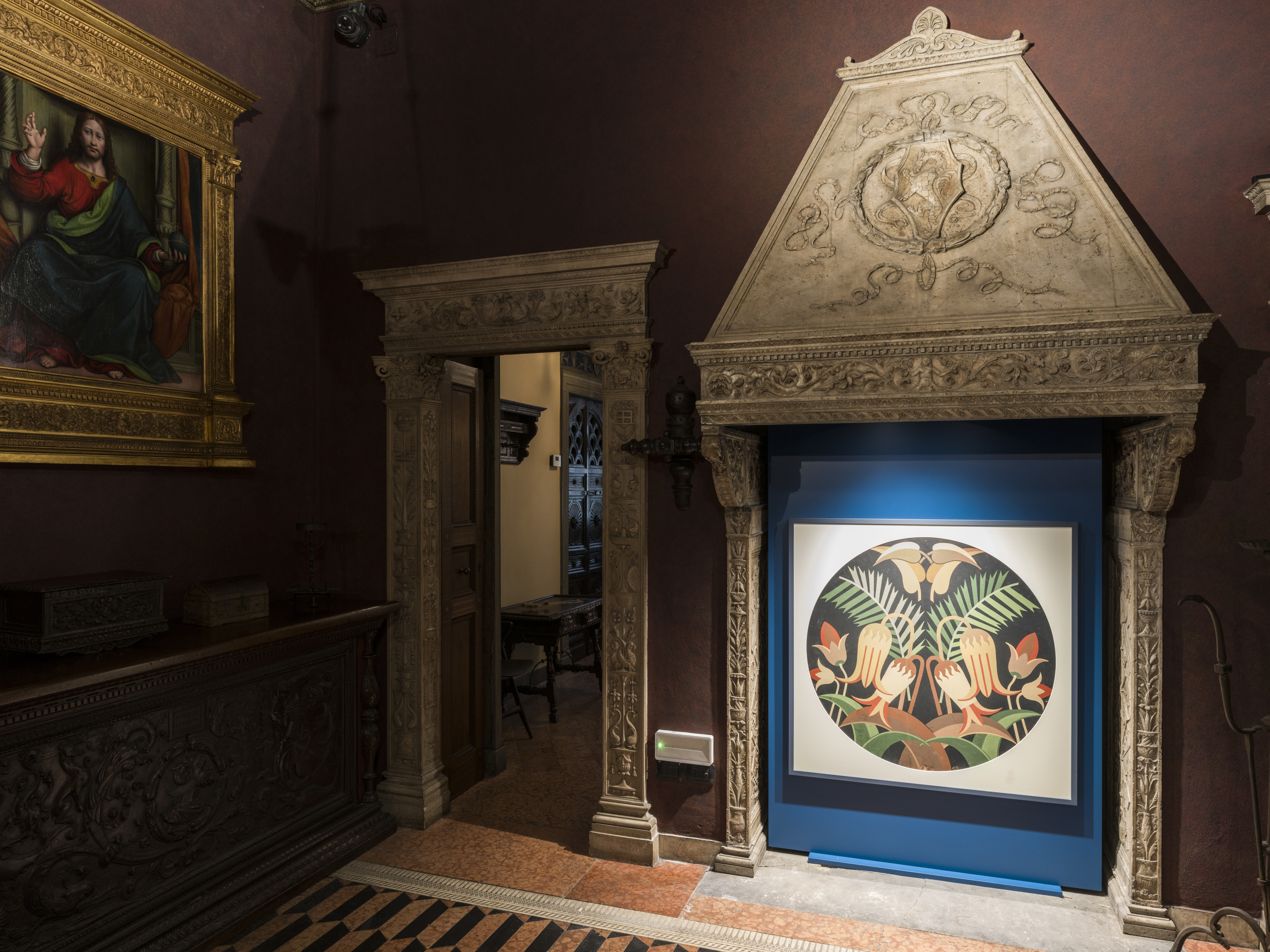Il percorso espositivo presenta oltre quaranta opere realizzate tra gli anni Trenta e Cinquanta, provenienti dalla Casa d’Arte Futurista Depero di Rovereto e dalle collezioni del Mart. Le creazioni dell’artista dialogano con gli ambienti della casa museo milanese: arredi, progetto abitativo e opera d’arte si intrecciano per restituire una visione immersiva del suo lavoro e del tema dello “spazio” come luogo di esperienza.