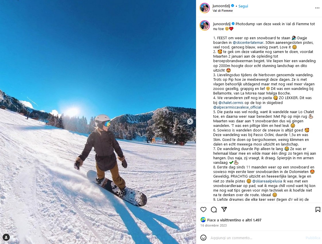 Il pomeriggio invece al racconto live, portando la community con Visittrentino al Canalone Miramonti, rendendola partecipe dell’hype fino al culmine della gara sportiva stessa.