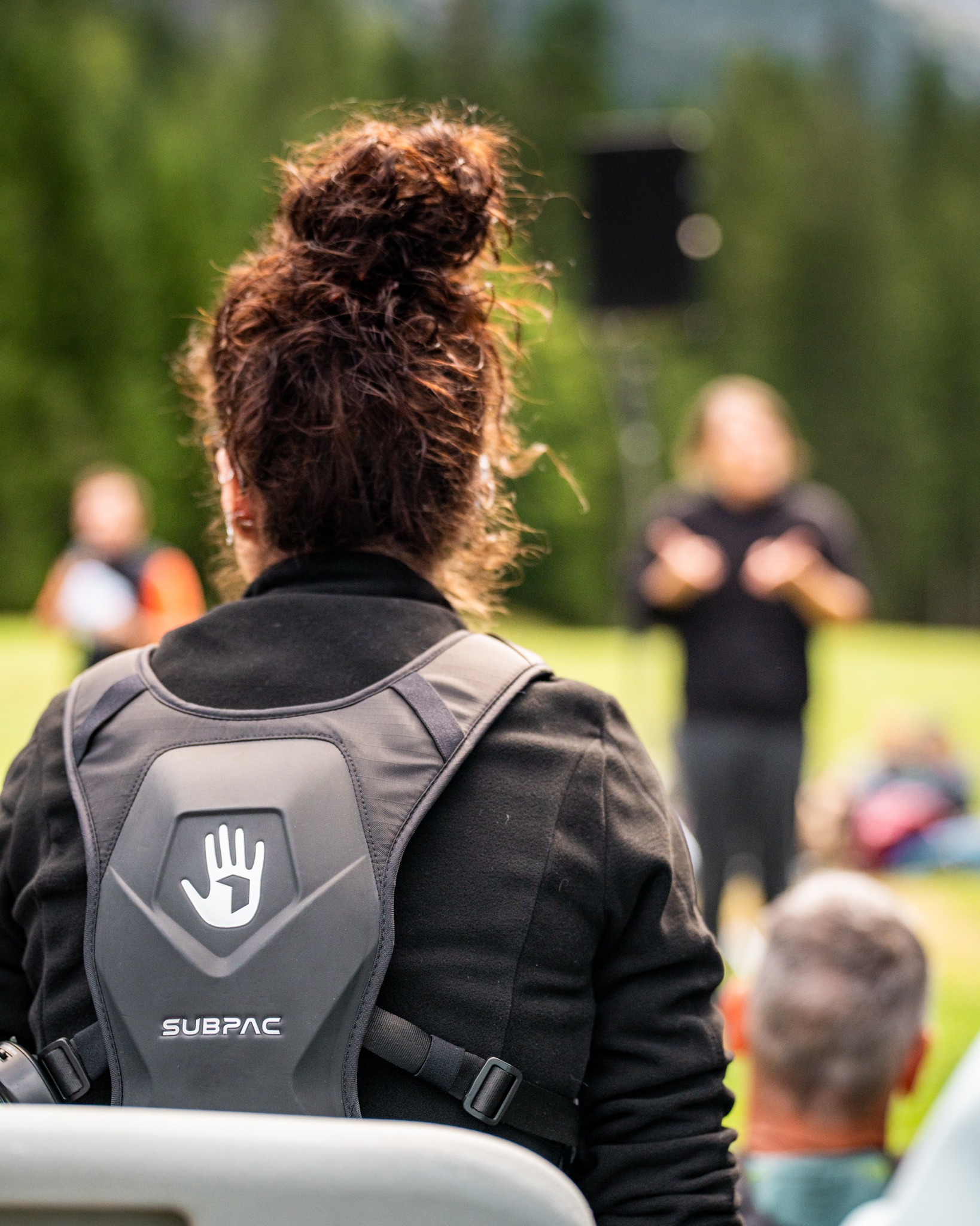 Le persone con disabilità uditiva hanno vissuto un’esperienza sensoriale unica, grazie ai Subpac, degli zaini tecnologici che tramite un sistema audio tattile trasferiscono la risposta alle basse frequenze direttamente al corpo dell’ascoltatore e con supporto di un traduttore LIS.