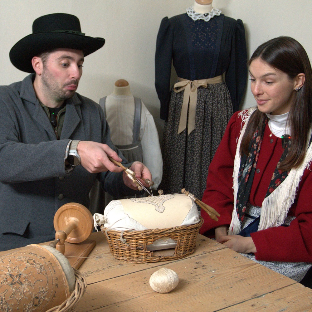 Durante la sua esplorazione, Carlo ha visitato i luoghi simbolo, incontrando i protagonisti impegnati a proteggere questo patrimonio di conoscenza e cultura. Ha documentato antichi saperi e tradizioni storiche, mostrando l'abbigliamento e la gastronomia tradizionale, oltre ai vecchi mestieri come il tombolo e l'architettura locale che incornicia le affascinanti strade acciottolate del borgo.
