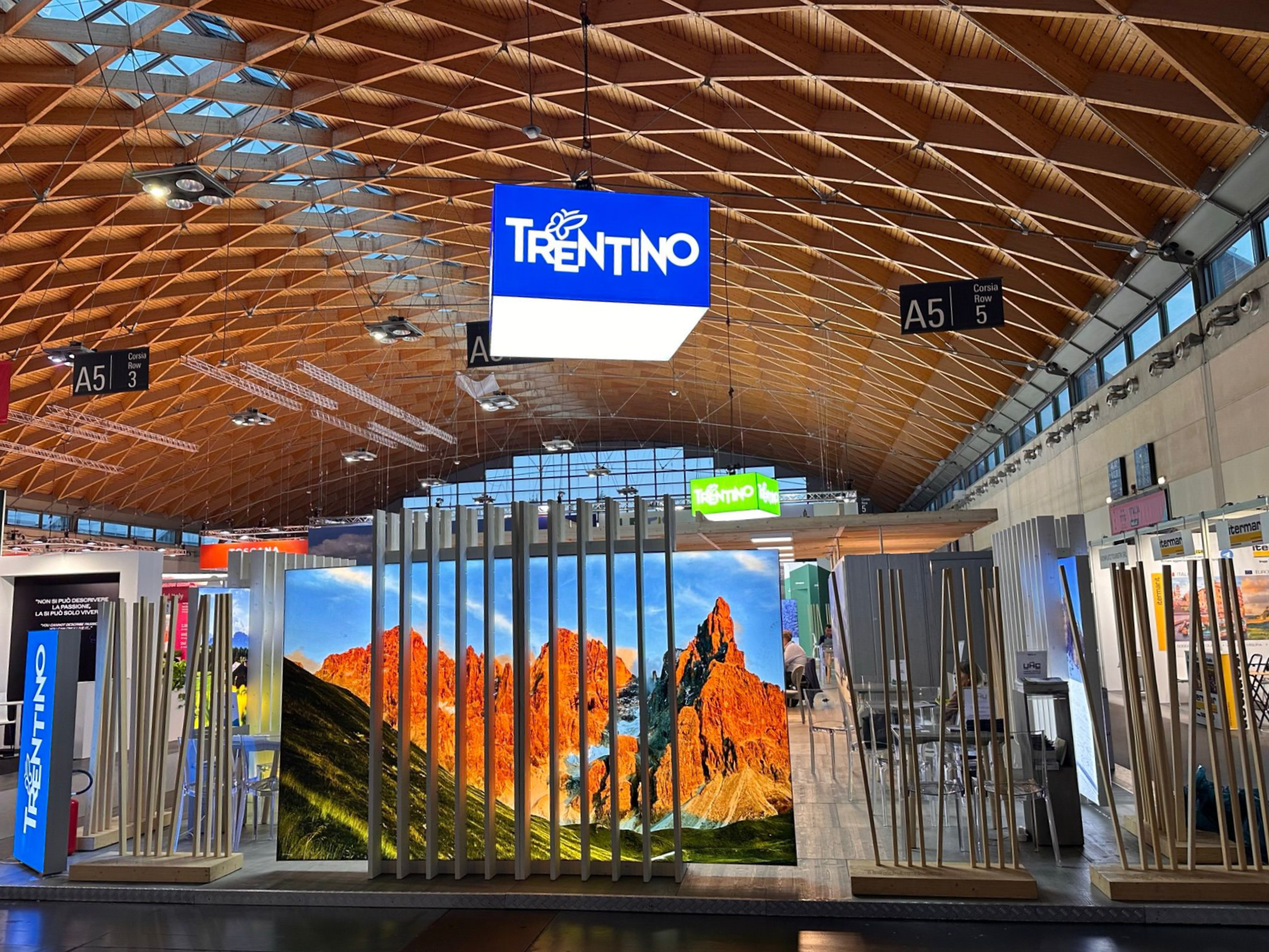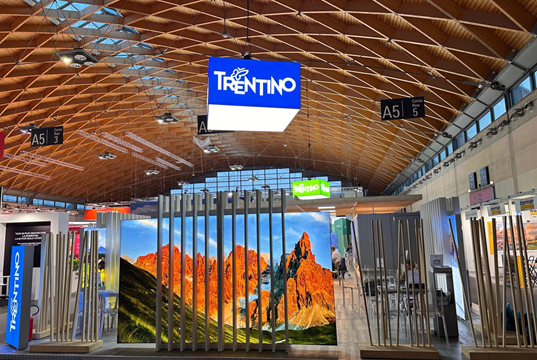 Il Trentino ha presentato uno stand condiviso con le ApT (ApT Paganella, ApT Rovereto, ApT Alpe Cimbra, ApT Trento, ApT Sole, ApT Garda, ApT Madonna di Campiglio, ApT Fassa, ApT Fiemme e Cembra, ApT Valsugana), DMC (Italica, Trentino Holidays, Caldana) e le catene alberghiere (Effe hotels, GH Terme, Dolomiti Clubres, Union Hotels). L'area espositiva è stata suddivisa in due zone business, dove gli operatori trentini hanno potuto condurre i propri incontri, e un'area centrale dedicata all'ospitalità, consentendo ai visitatori di assaporare i prodotti locali.