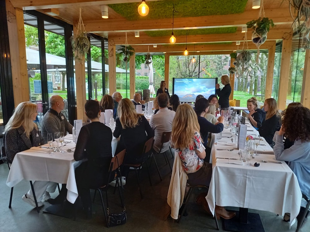 Il 9 maggio si è tenuto l’incontro stampa di presentazione del Trentino alla stampa olandese presso il Dignita Huistuin di Amsterdam. Il luogo è stato scelto per le sue connotazioni legate alla sostenibilità, compresa la sua valenza sociale nei confronti di persone con difficoltà, ed il concept dell’evento si è basato sul natural wellness, con il coinvolgimento di una terapista del respiro per una breve sessione di “tecniche di respirazione”. All’evento con formula informale, aperitivo a base di Trentodoc seguito da una cena con menu light, hanno presenziato una ventina di giornalisti selezionati. Presenti il quotidiano De Telegraaf e il maggior sito di informazioni RTL Nieuws, oltre a testate di viaggi (Italie Magazine, Society World), e riviste femminili/lifestyle come Vriendin, Margriet, Marie Claire e Nouveau.