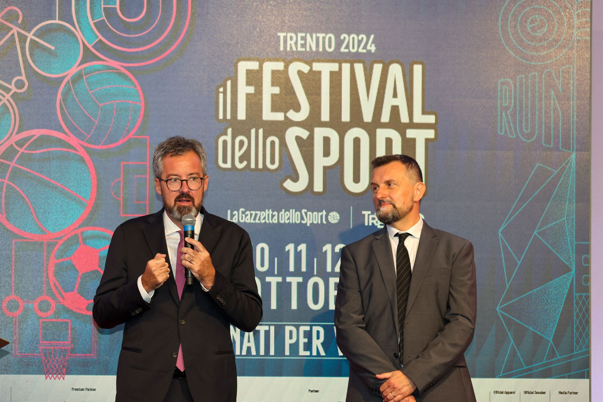 Alla conferenza stampa di presentazione del palinsesto e dei protagonisti del Festival, svoltasi a Milano mercoledì 11 settembre, hanno partecipato Francesco Carione, Direttore Generale La Gazzetta dello Sport, Maurizio Fugatti, Presidente Provincia autonoma di Trento, Stefano Barigelli, Direttore La Gazzetta dello Sport, Gianni Valenti, Vicedirettore vicario La Gazzetta dello Sport e Direttore scientifico Il Festival dello Sport, Giovanni Battaiola, Presidente Trentino Marketing, Maurizio Rossini, CEO Trentino Marketing, Franco Ianeselli, Sindaco di Trento, Paolo Bouquet, Delegato del Rettore allo Sport con delega speciale alle Olimpiadi Invernali 2026, e Uberto Fornara, Amministratore Delegato CAIRORCS MEDIA. Sono intervenuti con un videomessaggio Giovanni Malagò, Presidente CONI, e Luca Pancalli, Presidente del CIP. Hanno presenziato inoltre Paola Mora, Presidente CONI Trento, e Massimo Bernardoni, Presidente CIP Trento. Ha condotto l’evento la giornalista di La7 Cristina Fantoni.